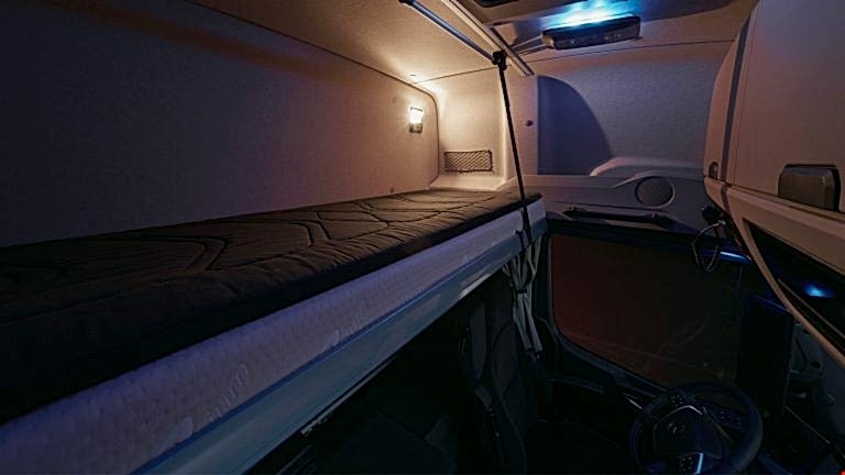 Uzun yol taşımacılığında çalışanlar molalarda yüksek bir uyku ve yaşam konforuna ihtiyaç duyar. Burada Actros L, SoloStar Concept'ten oluşan premium kombinasyon ve son derece konforlu yataklar öne çıkıyor.