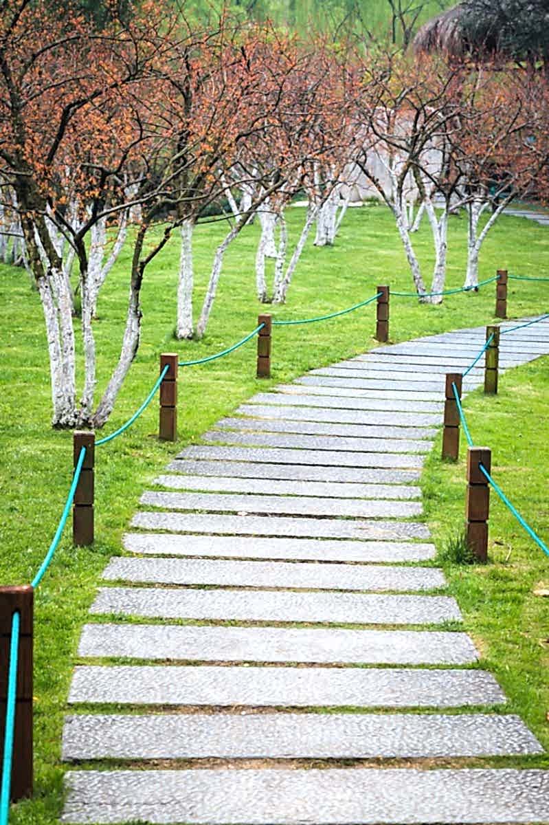 Walkways and stair steps in sloped or terraced areas